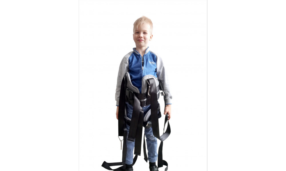 Жилет подвесной от American Motion Fitness предназначен для фиксации пользователей на беговых дорожках AMF с подвесом и на передвижных подвесах AMF при восстановлении навыков ходьбы. Наш универсальный жилет может использоваться для систем подвесов также и других производителей. Жилет могут использовать люди с весом до 100 кг! Прочные капроновые ремни и автомобильные автоматические замки ремней безопасности рассчитаны на повышенные нагрузки. Жилет комплектуется двумя карабинами для крепления к подвесу. Наш жилет может надеваться и сниматься самим пациентом без особого труда. На торсе тренирующегося жилет фиксируется спереди тремя быстросъемными застежками фастекс. Объем груди регулируется ремнями в широком диапазоне. Максимальная длина ремней от крепления верхнего карабина до уровня плеча пользователя составляет от 0 до 130 см, таким образом, жилет может использоваться для людей любого роста, а также на креплениях подвесов к потолку, стене и т.п. Для равномерно распределения нагрузки на площадь жилета он оснащен ремнями для обхвата бедер. Бедренные ремни также регулируются, имеют автомобильные быстросъемные замки. На фото ребенок 7 лет, рост - 128 см, вес ребенка - 24 кг, объем талии - 50см., объем груди - 55 см. С нашим жилетом тренировки станут комфортными и результативными!